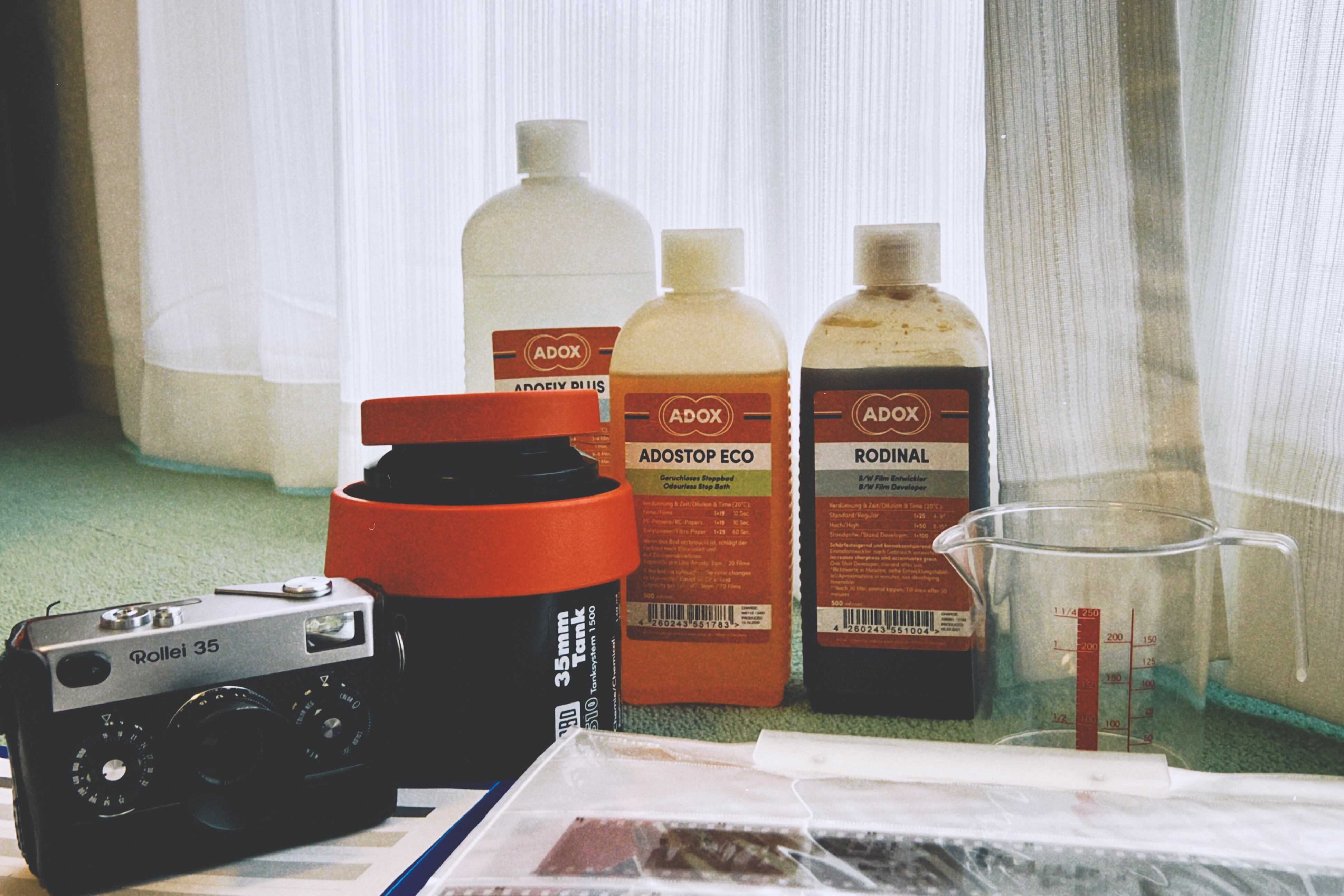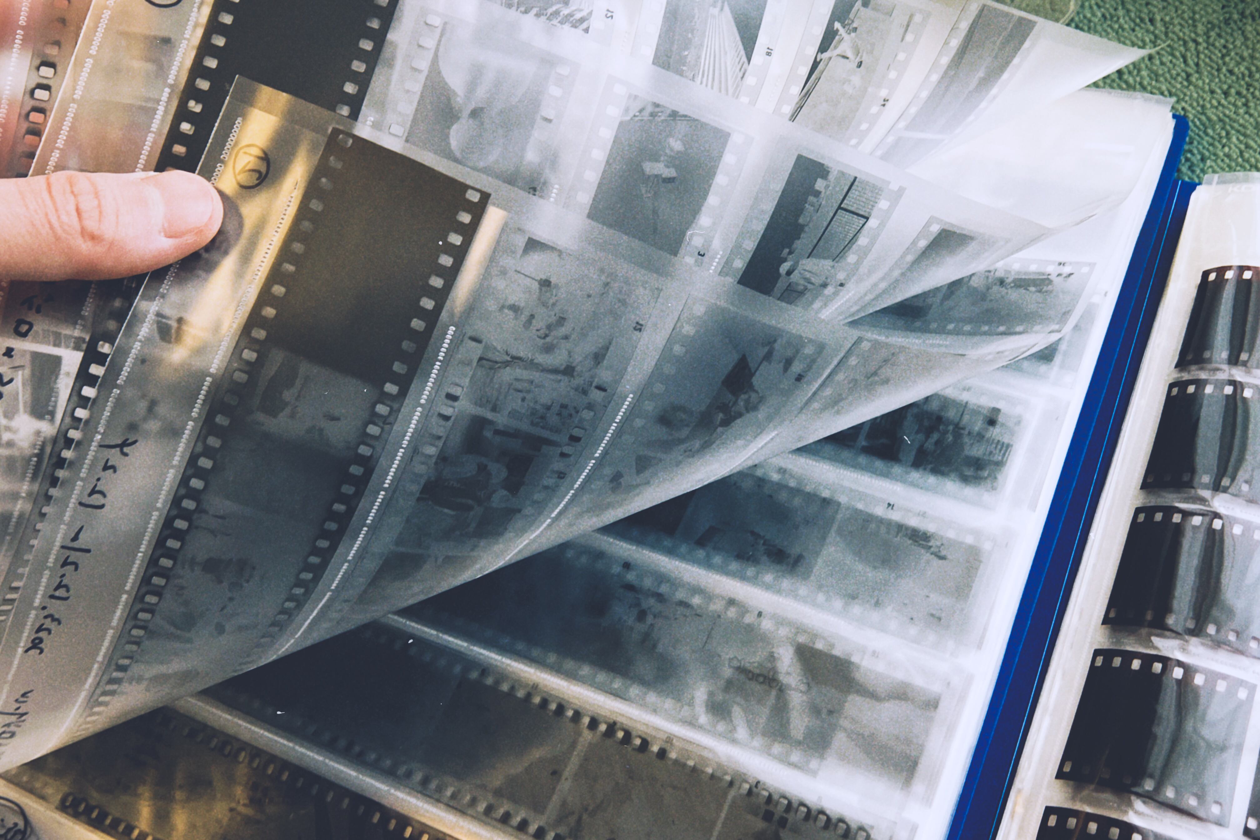 モノクロフィルムで撮影したネガを自家現像し、暗室で印画紙に焼き付けました。